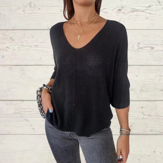 Batwing Sleeve Solid Color V-Neck Knit Top (Buy 2 Free Shipping)