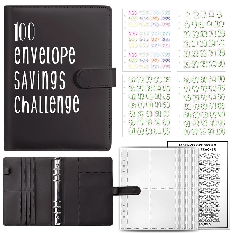 Our 100 Envelope Challenge Binder includes an A5-sized binder, a reusable tracker, and labeled pouches from 1 to 100. Made with top-quality materials like PU, stainless steel, and paper, it's built to last.