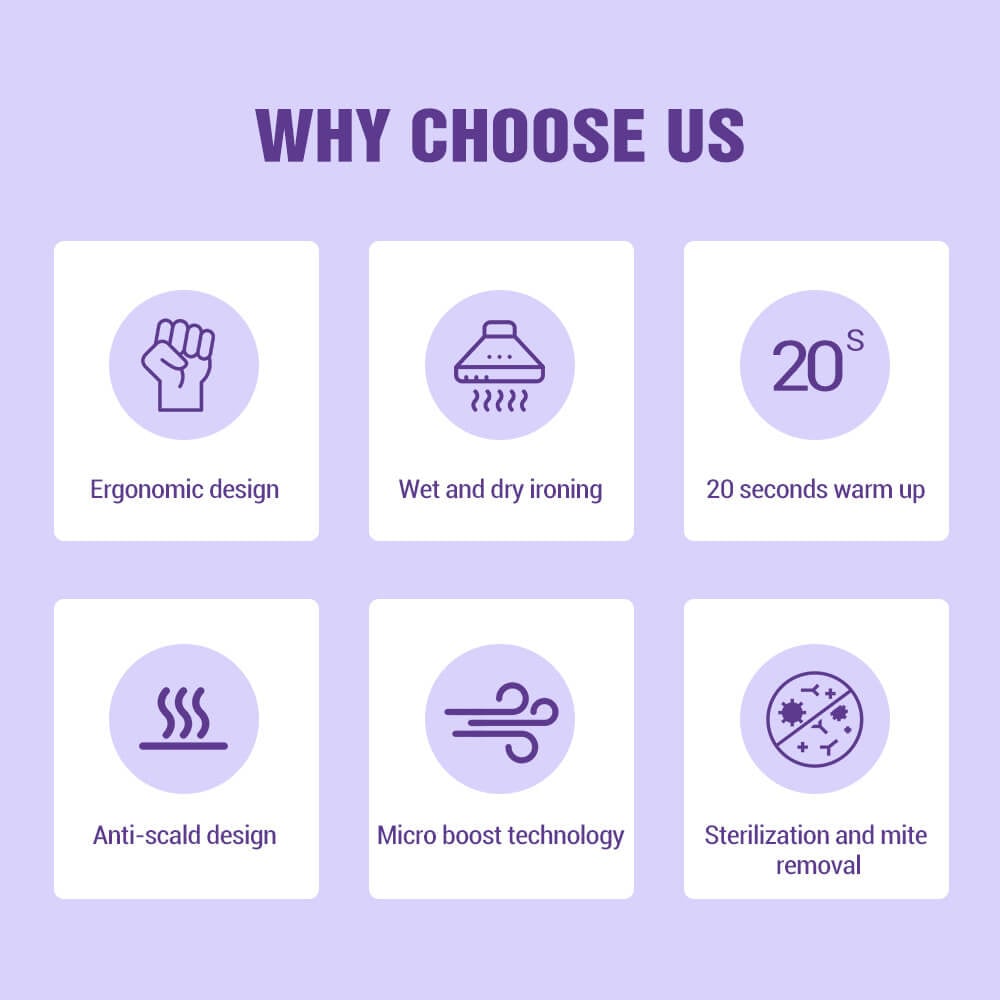 - 20 seconds of preheating, 3 minutes of rapid ironing, continuous steam ironing, two-stage steam regulation, quickly smooth the wrinkles of clothing, ironing effect is better.