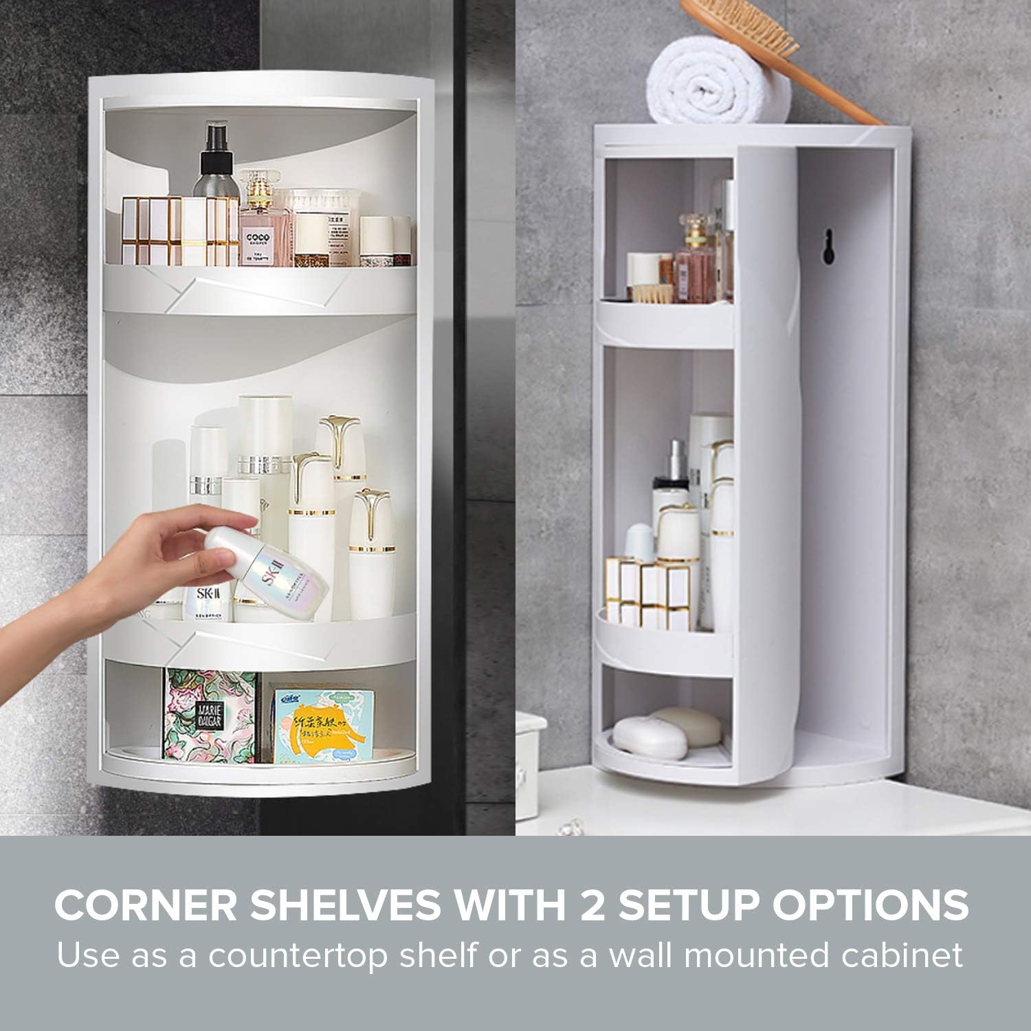 360 Degrees Rotating & Dustproof - Our triangular rack can be rotated 360°, easy to use. The front of the shelf is covered, it can effectively prevent dust and keep the stored items clean. It is not like ordinary storage racks.is as easy to accumulate dust.